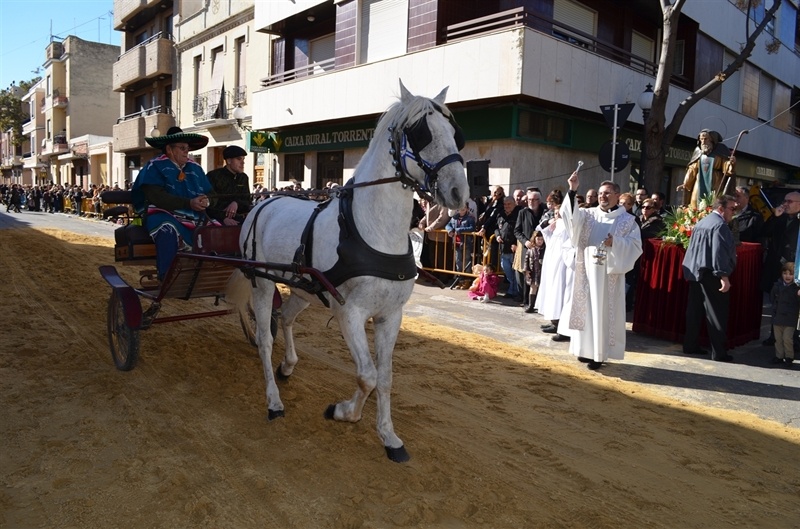 Imatge de la Festa de Sant Antoni, Al voltant del dia de Sant Antoni, la comissió d'aquest Sant amb el suport de l'Ajuntament organitzen la tradicional benedicció dels animals. Eixe dia, els protagonistes són els animals, especialment cavalls i rucs (tot i que també gossos, gats i pardals) que passen per davant de la figura del Sant per a rebre la benecció de mans del retor.