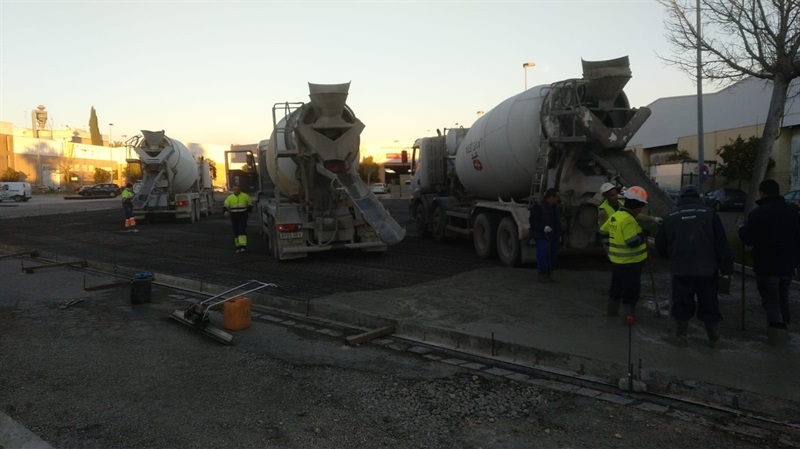 Repavimentació de l'aparcament municipal de camions, s'ha previst l'extensió sobre la rasant actual d'una capa de 23 cm. d'espessor de paviment de formigó vibrat tipus HP-40.